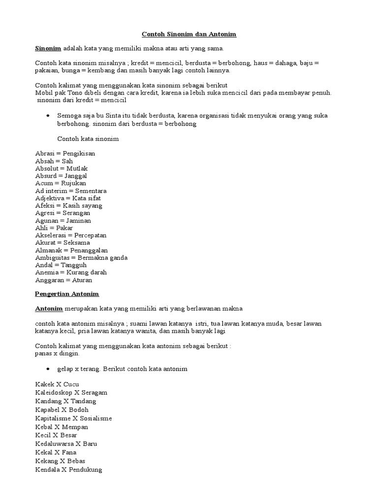 Kumpulan Sinonim Dalam Bahasa Indonesia Utakatikotak Com